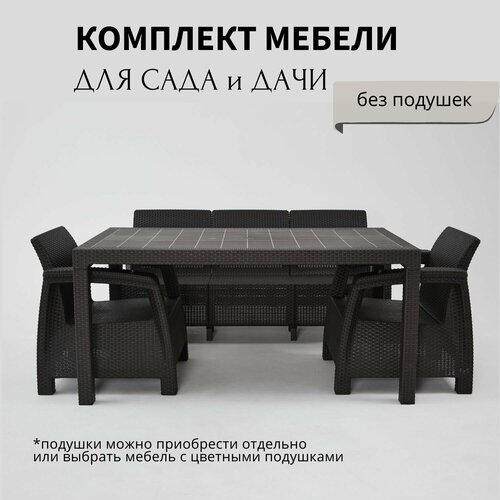 Созданная из прочного и устойчивого к воздействию погоды материала, эта мебель не только выдержит испытание временем, но и обеспечит вам максимальный комфорт на протяжении многих лет. Включающий в себя стол, диван и кресла, набор универсален и подойдет для любых целей, будь то уютные семейные ужины на свежем воздухе или теплые летние дни, проведенные на солнце. Садовая мебель для дачи – идеальный вариант для комфортного и безмятежного времяпровождения!