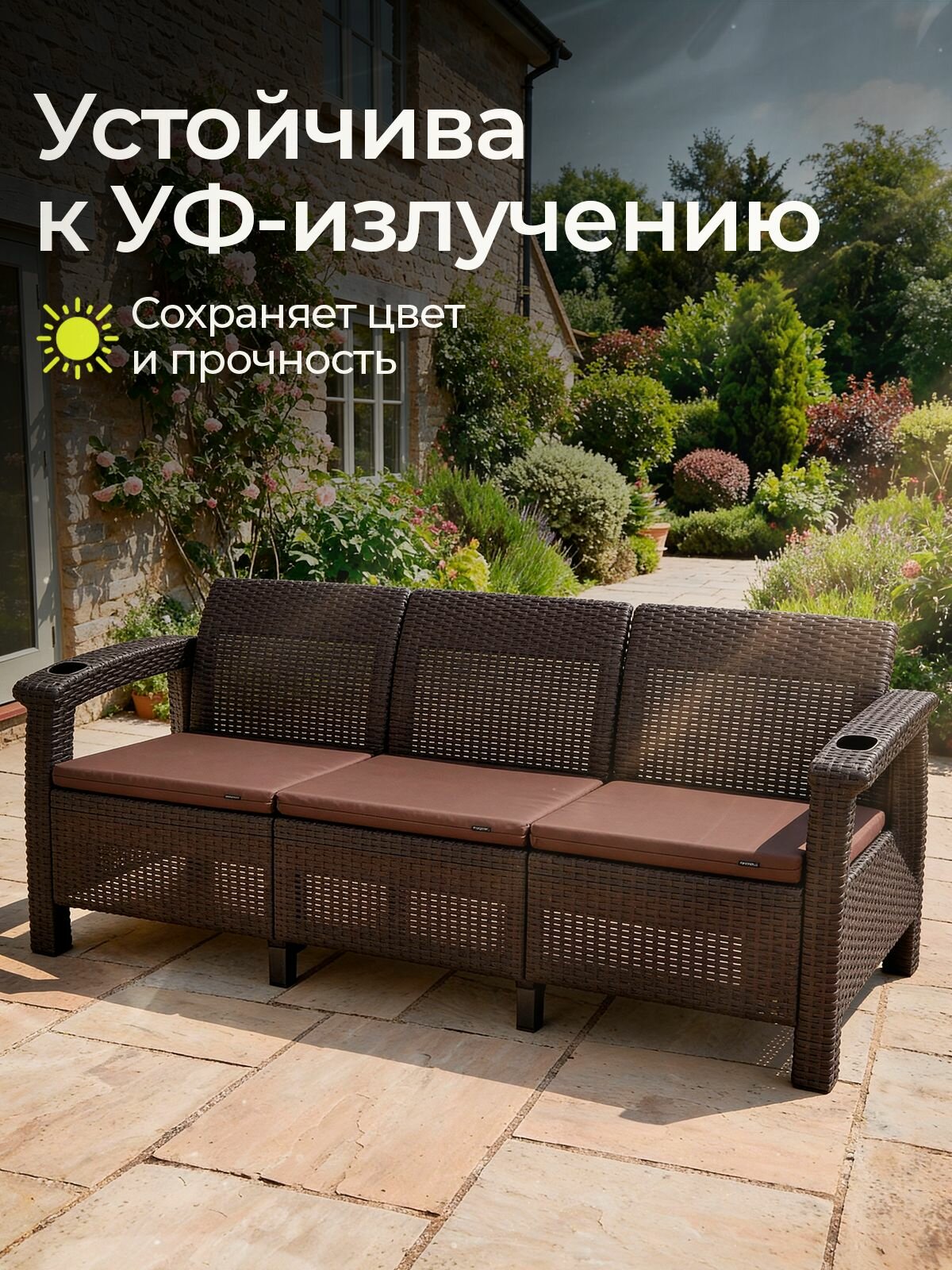 Откройте для себя новые грани комфорта с нашей садовой мебелью! Садовая мебель - это идеальное сочетание функциональности и элегантности. Созданная из прочного и устойчивого к воздействию погоды материала, эта мебель не только выдержит испытание временем, но и обеспечит вам максимальный комфорт на протяжении многих лет. Включающий в себя стол, диван и кресла, набор универсален и подойдет для любых целей, будь то уютные семейные ужины на свежем воздухе или теплые летние дни, проведенные на солнце. Садовая мебель для дачи – идеальный вариант для комфортного и безмятежного времяпровождения! Мебель из полипропилена садовая не только практична, но и стильна. Она обладает классическим дизайном, который украсит любой сад или террасу, придав им изысканный и утонченный вид. Набор садовой мебели выделяет ее качественное исполнение и внимание к деталям. Большое преимущество - удобство и легкость в уходе. Комплект садовой мебели легко очищается от грязи и пыли, сохраняя свой первоначальный вид долгое время. Кроме того, компактные размеры позволяют разместить мебель из полипропилена даже на небольших площадях. Позвольте себе насладиться великолепием на открытом воздухе в комфорте и стиле с нашей садовой мебелью. Это не просто мебель для дачи, это инвестиция в ваше наслаждение жизнью на свежем воздухе. Благодаря ей, ваш сад или терраса станут идеальным местом для отдыха, встреч с друзьями и проведения праздников.
