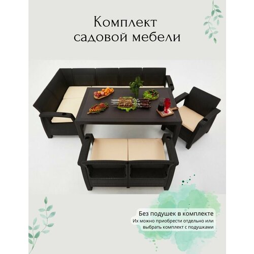 Созданная из прочного и устойчивого к воздействию погоды материала, эта мебель не только выдержит испытание временем, но и обеспечит вам максимальный комфорт на протяжении многих лет. Включающий в себя стол, диван и кресла, набор универсален и подойдет для любых целей, будь то уютные семейные ужины на свежем воздухе или теплые летние дни, проведенные на солнце. Садовая мебель для дачи – идеальный вариант для комфортного и безмятежного времяпровождения!