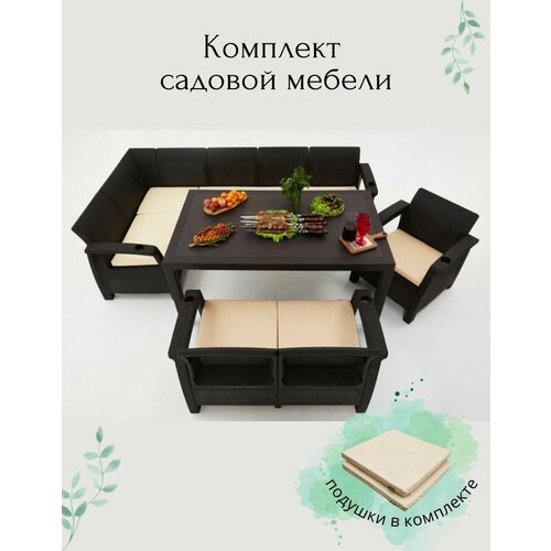 Созданная из прочного и устойчивого к воздействию погоды материала, эта мебель не только выдержит испытание временем, но и обеспечит вам максимальный комфорт на протяжении многих лет. Включающий в себя стол, диван и кресла, набор универсален и подойдет для любых целей, будь то уютные семейные ужины на свежем воздухе или теплые летние дни, проведенные на солнце. Садовая мебель для дачи – идеальный вариант для комфортного и безмятежного времяпровождения!