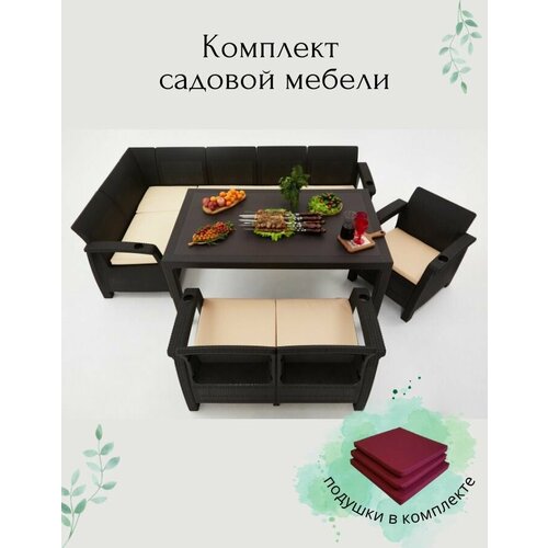 Созданная из прочного и устойчивого к воздействию погоды материала, эта мебель не только выдержит испытание временем, но и обеспечит вам максимальный комфорт на протяжении многих лет. Включающий в себя стол, диван и кресла, набор универсален и подойдет для любых целей, будь то уютные семейные ужины на свежем воздухе или теплые летние дни, проведенные на солнце. Садовая мебель для дачи – идеальный вариант для комфортного и безмятежного времяпровождения!