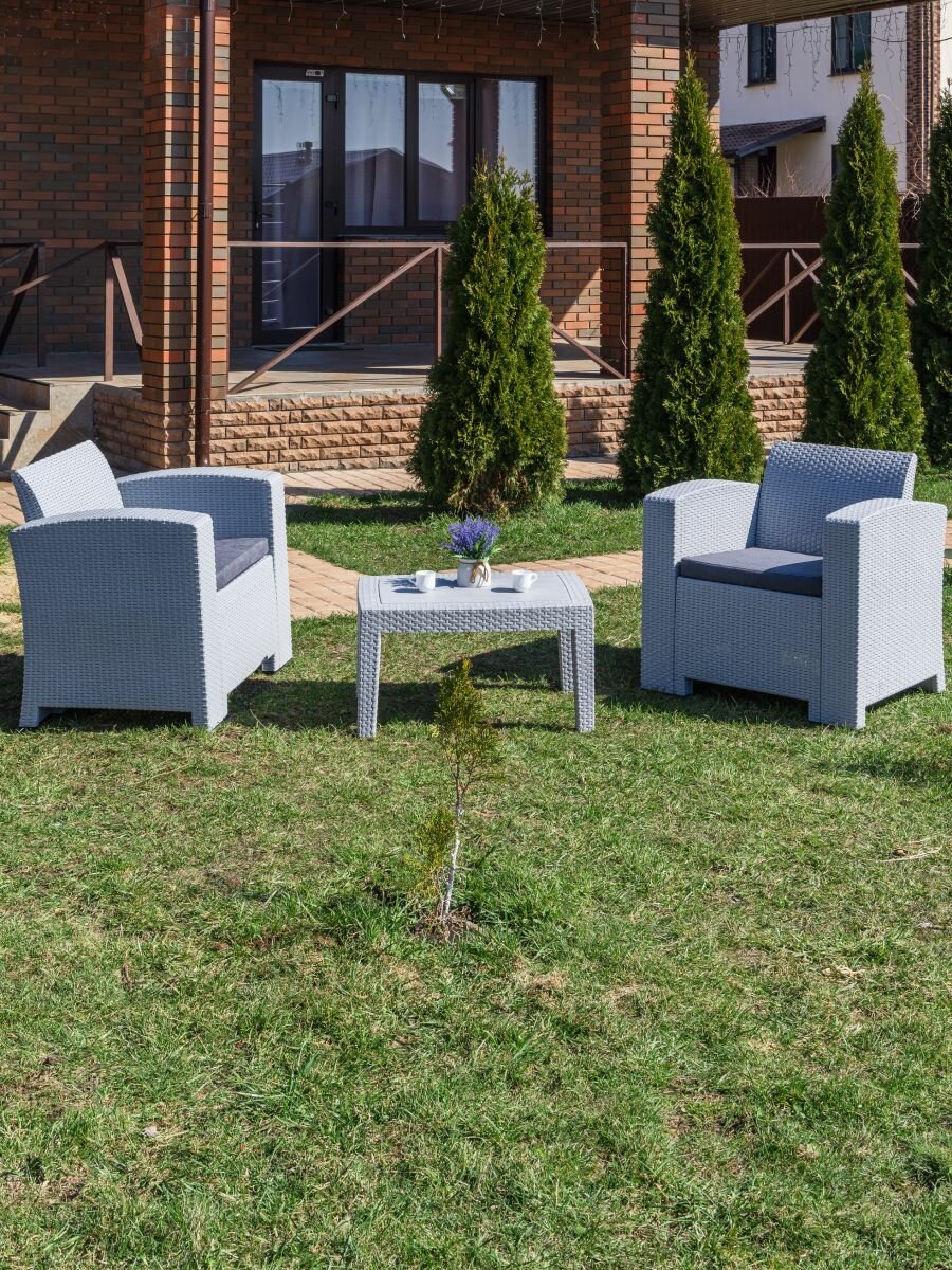 Комплект садовой мебели Royal Family LANA LUX XS (2 пластиковых кресла + кофейный столик), светло-серый: сравнение цен, характеристики, фото, актуальное наличие и цены.