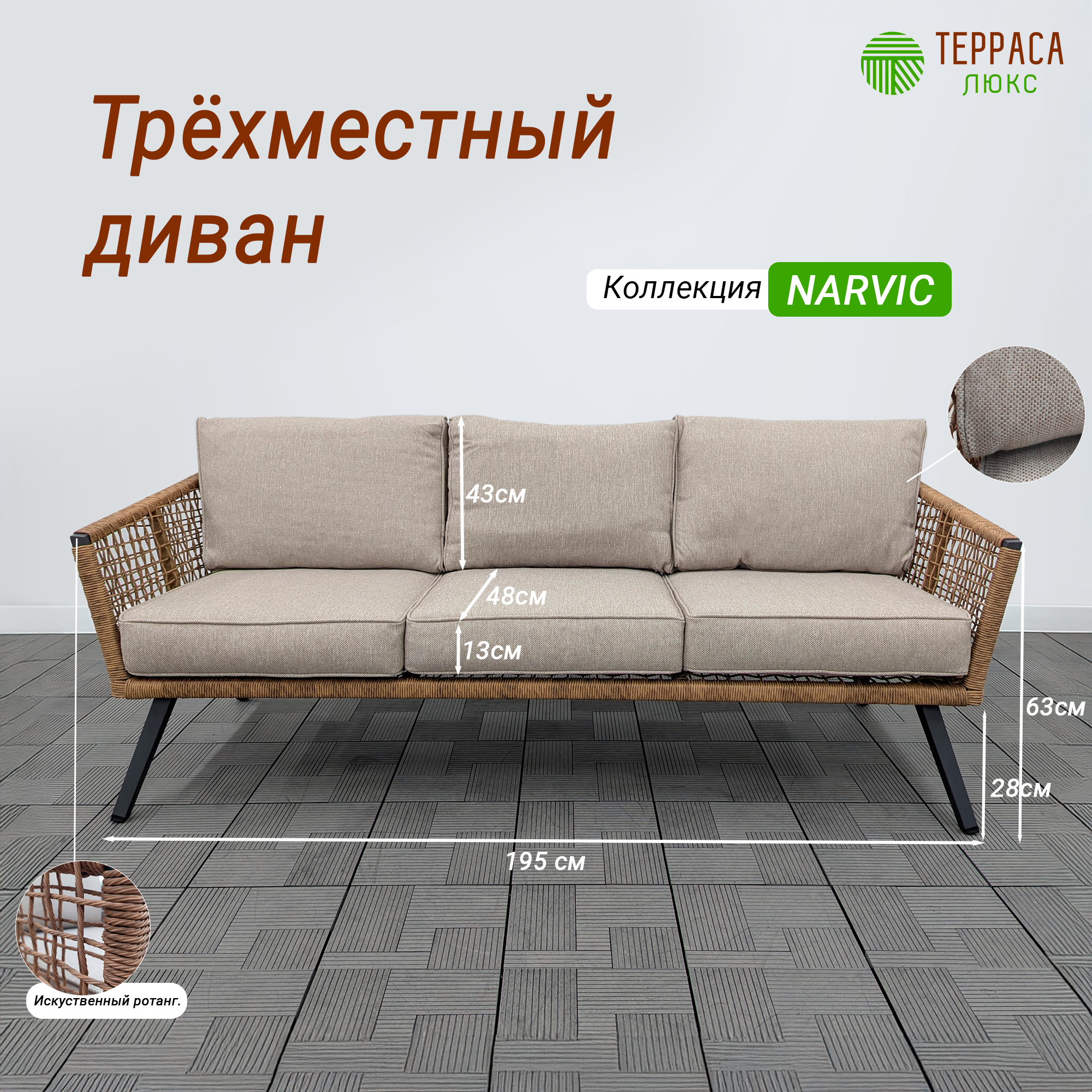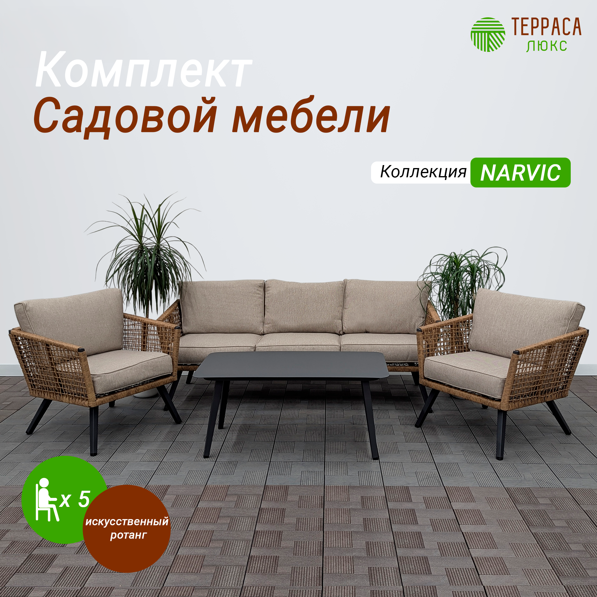 Комплект садовой мебели NARVIC, искусственный ротанг, 5 персон, 2 кресла, 3-х местный диван, кофейный столик: сравнение цен, характеристики, фото, актуальное наличие и цены.