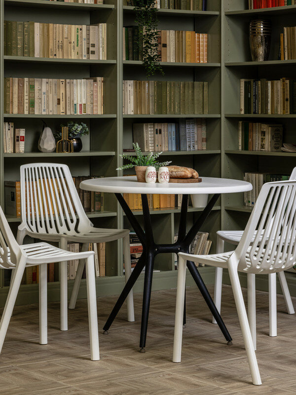 Комплект садовой мебели Royal Family: черно-белый стол TOM + 4 белых стула NICO: сравнение цен, характеристики, фото, актуальное наличие и цены.