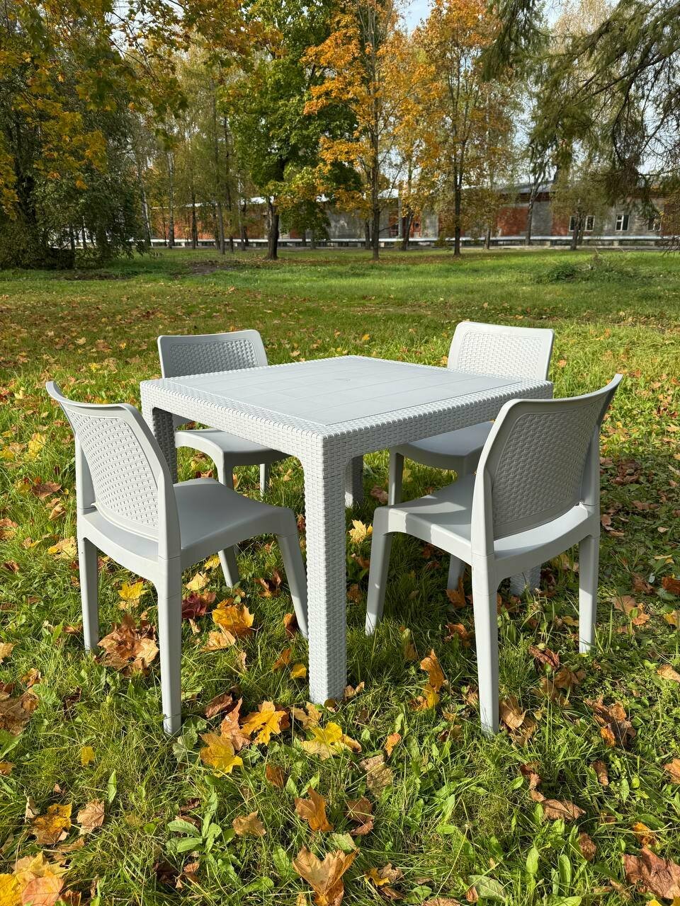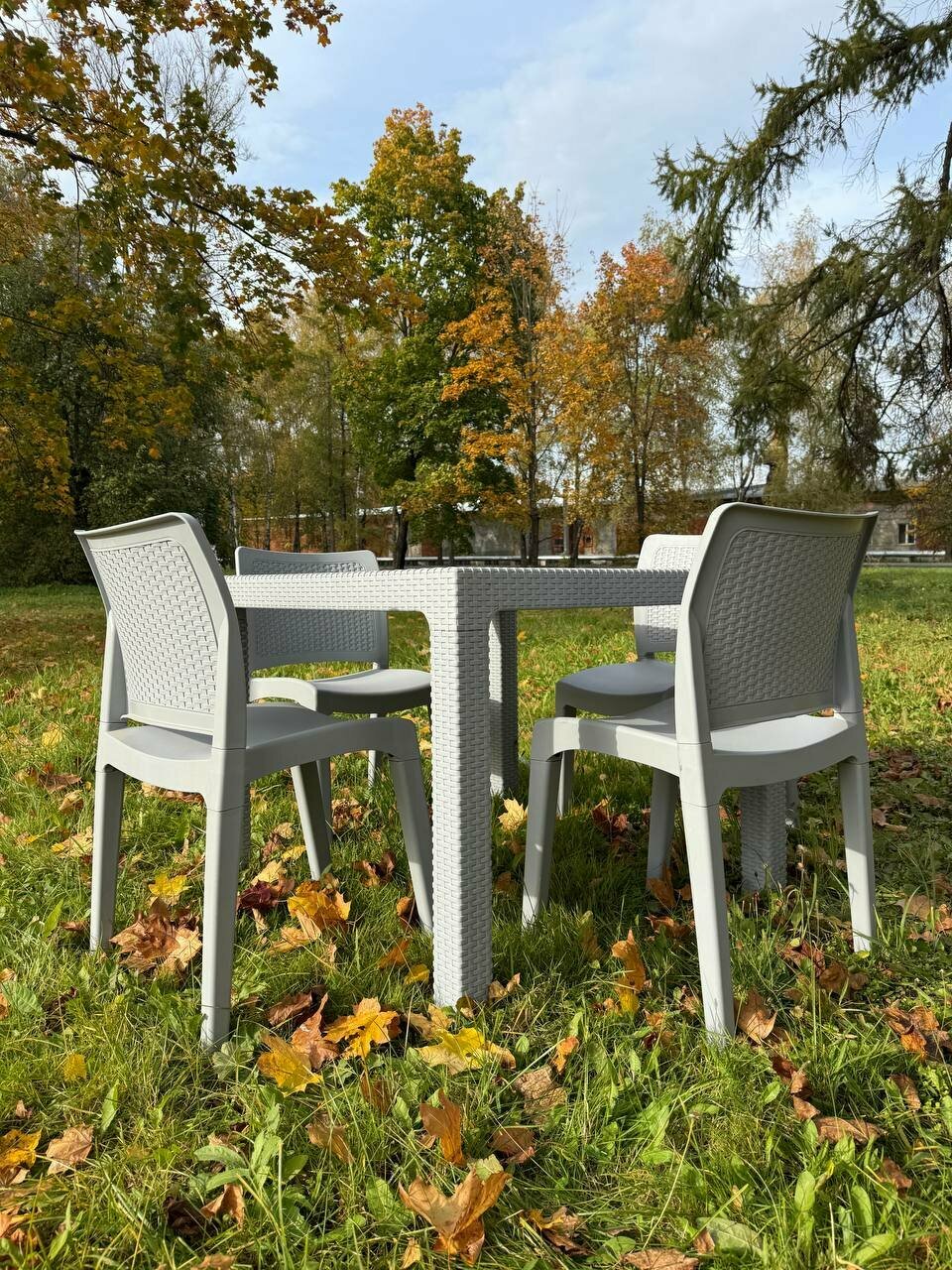 Комплект садовой мебели Royal Family JULY MINI S на 4 персоны, светло-серый, представляет собой стильное и функциональное решение для вашего сада, дачи или улицы.