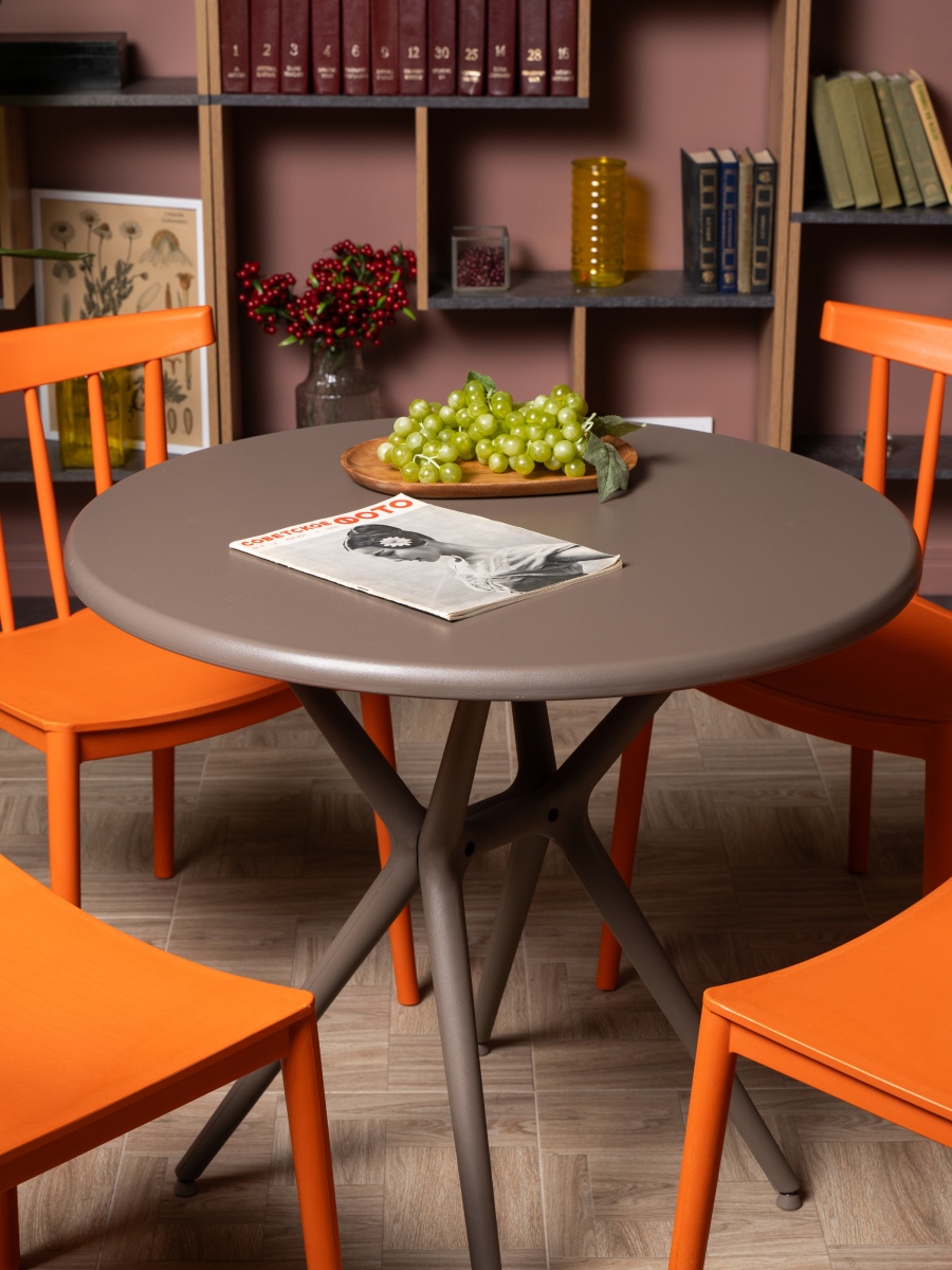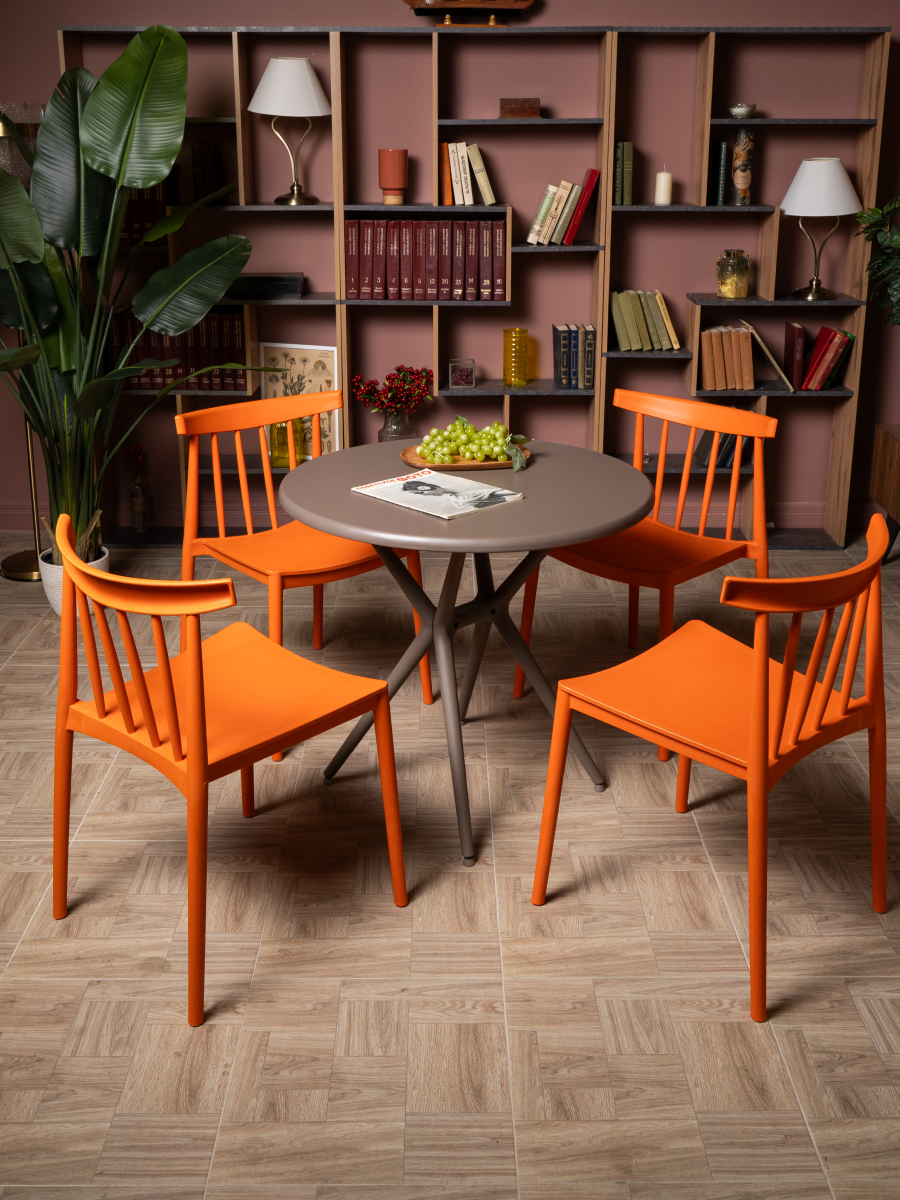 Купить Комплект садовой мебели Royal Family: стол TOM капучино + 4 оранжевых стула KAI с доставкой по всей России.