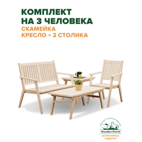 Комплект садовой мебели из массива дерева (столик кофейный, столик журнальный, скамейка, стул) на 3 человека: сравнение цен, характеристики, фото, актуальное наличие и цены.