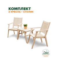 Купить Комплект садовой мебели из массива дерева (столик кофейный, 2 стула со спинкой) на 2 человека с доставкой по всей России.