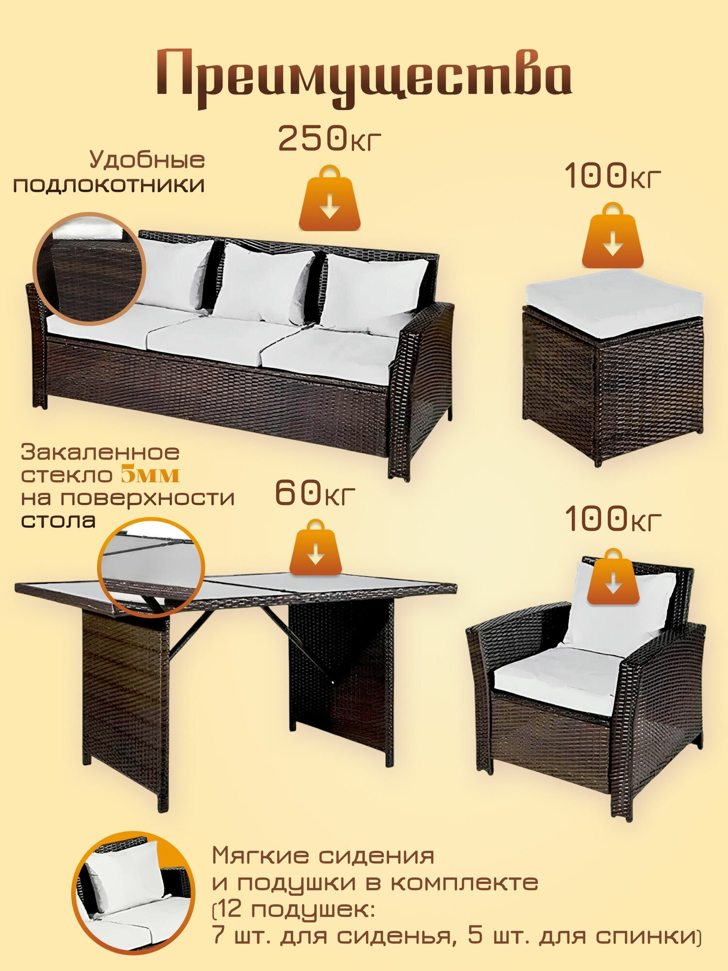 Преобразите свою дачу в уютное и приглашающее место для отдыха с нашим набором садовой мебели из ротанга. Насладитесь летними вечерами в кругу близких и создайте незабываемые моменты с нашей удобной и стильной мебелью.