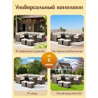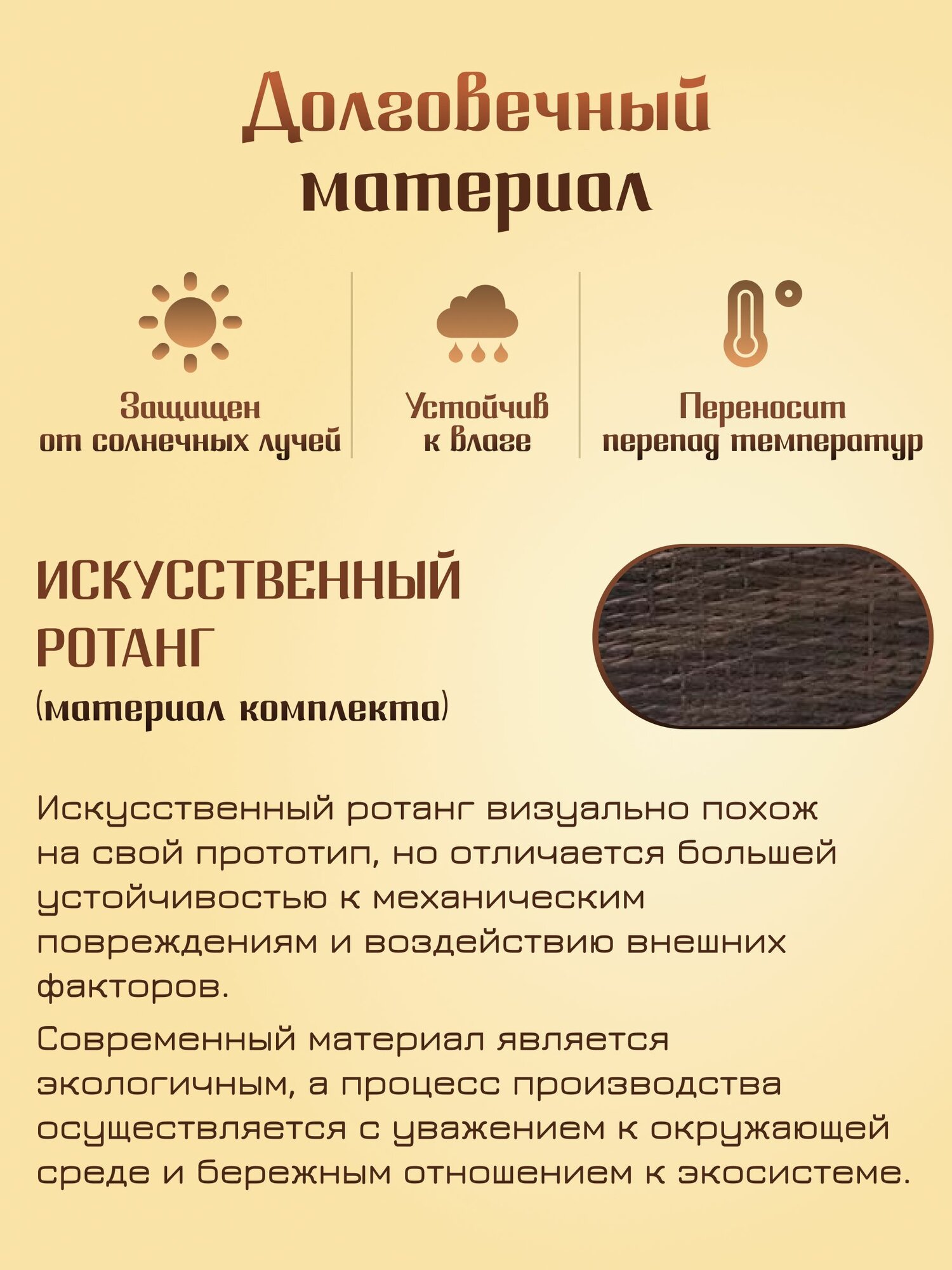 Наша садовая мебель изготовлена из высококачественного искусственного ротанга, придающего ей элегантный и изысканный вид.
