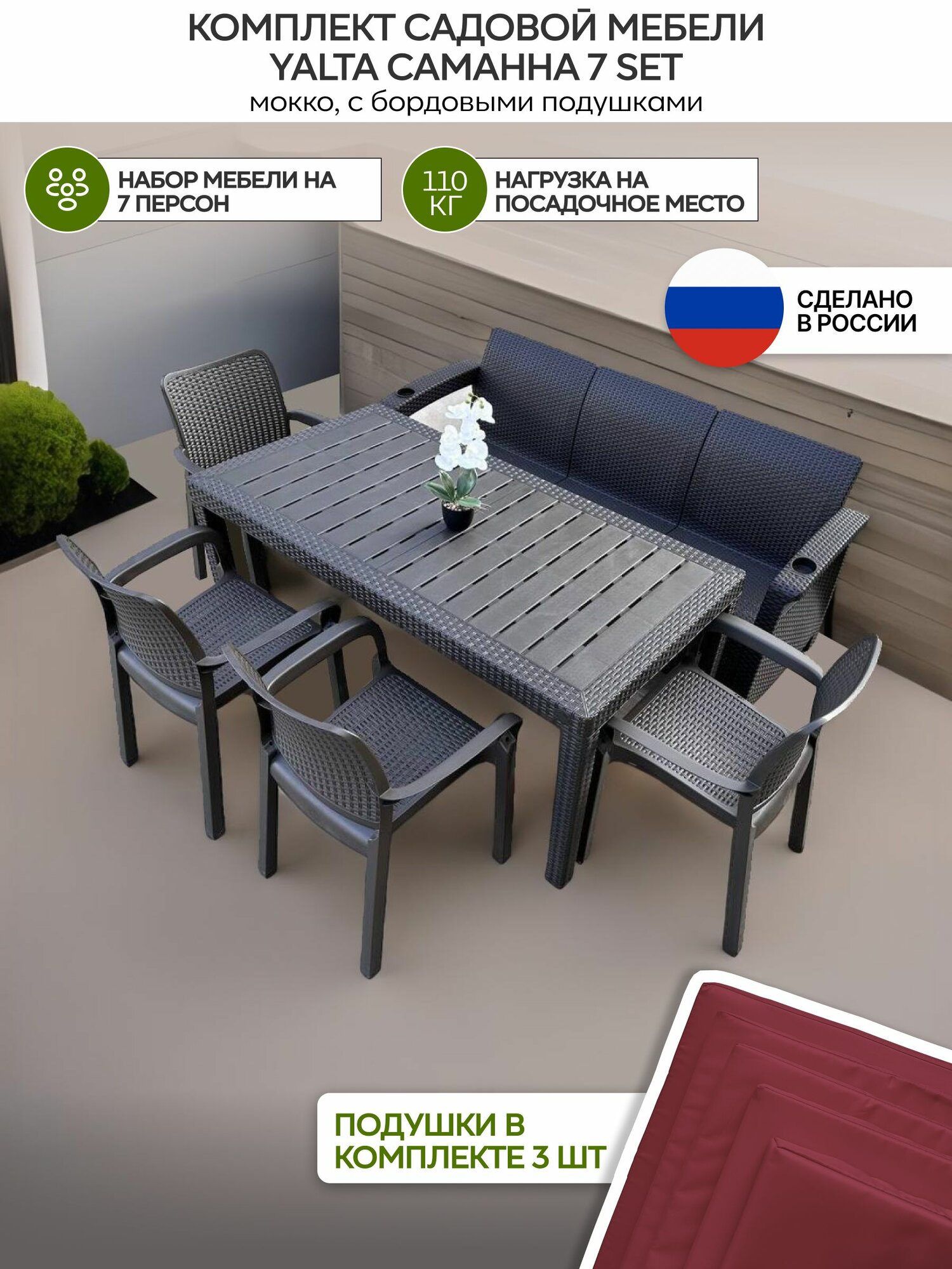 Купить Комплект садовой мебели Yalta Саманна 7 set, подушки бордовые с доставкой по всей России.