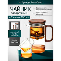 Купить Комплект SamaDoyo Чайник заварочный гунфу Bonston Premium из боросиликатного стекла 500 мл + 2 чашки для чая 150 мл с доставкой по всей России.