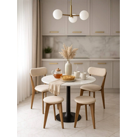 Стулья для кухни SANYAK 2 шт мягкие со спинкой и табуретки 2 шт комплект для обеденной зоны, велюр, Бежевый