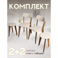 Купить Стулья для кухни SANYAK 2 шт мягкие со спинкой и табуретки 2 шт комплект для обеденной зоны, велюр, Бежевый с доставкой по всей России.