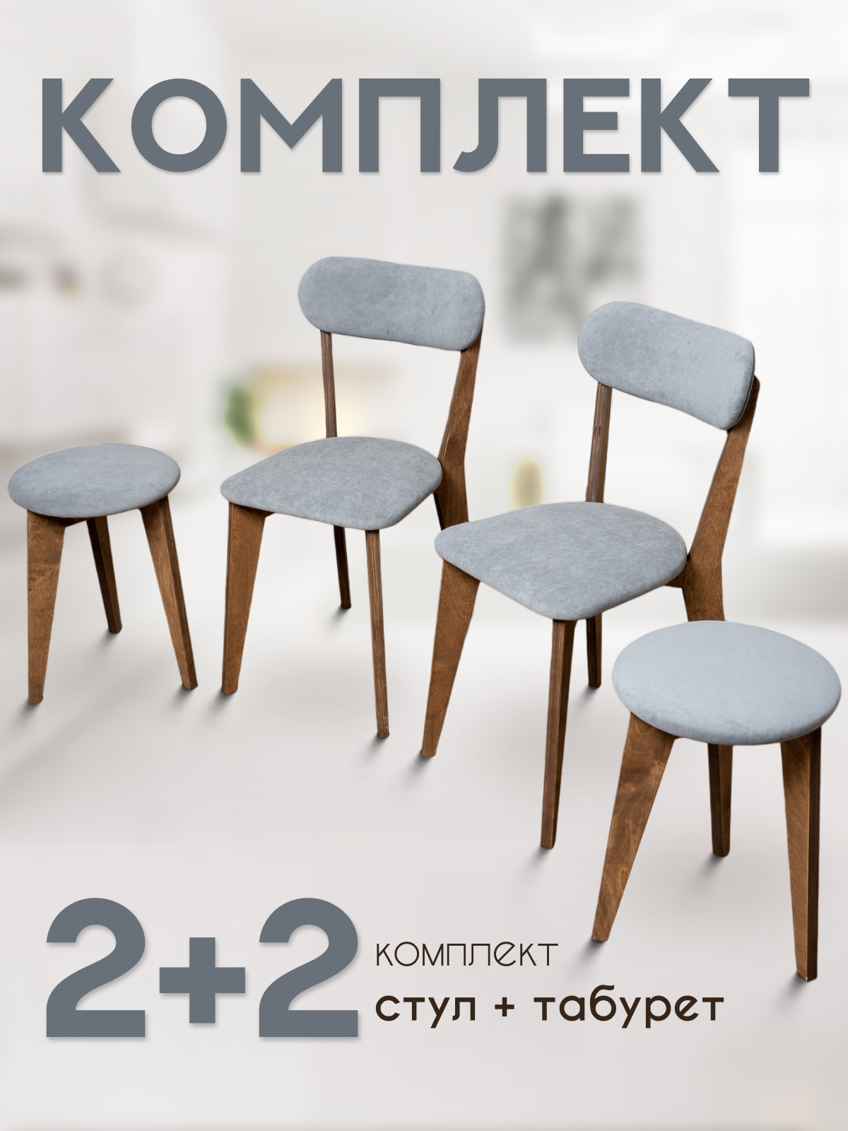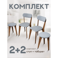 Купить Стулья для кухни SANYAK 2 шт мягкие со спинкой и табуретки 2 шт комплект для обеденной зоны, велюр, Серый с доставкой по всей России.