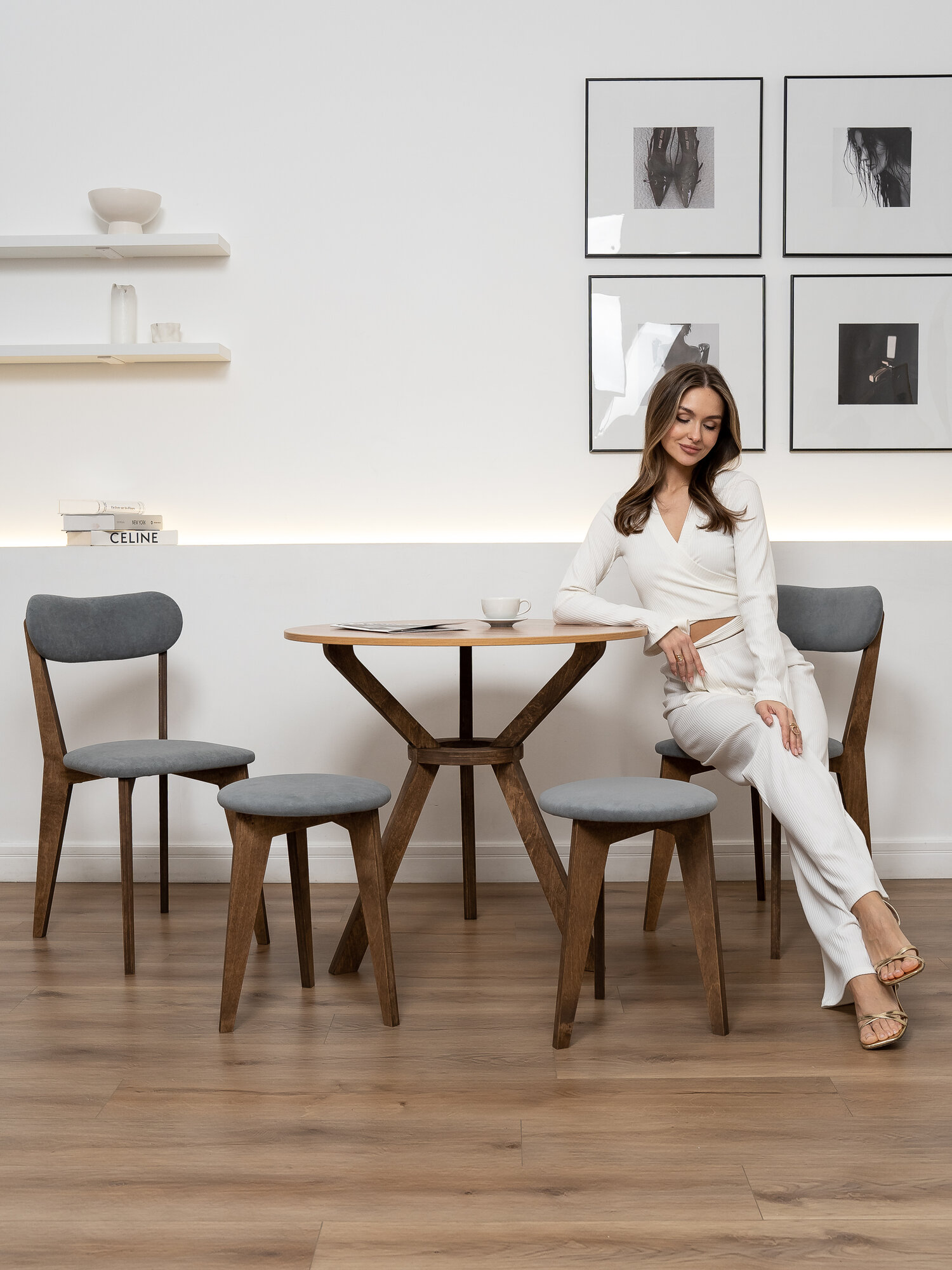 Стулья для кухни SANYAK 2 шт мягкие со спинкой и табуретки 2 шт комплект для обеденной зоны, велюр, Серый