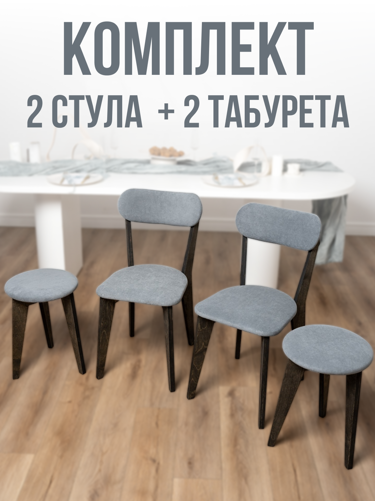 Купить Стулья для кухни SANYAK 2 шт мягкие со спинкой и табуретки 2 шт комплект для обеденной зоны, велюр, Серый с доставкой по всей России.