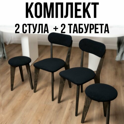 Купить Стулья для кухни SANYAK 2 шт мягкие со спинкой и табуретки 2 шт комплект для обеденной зоны, велюр, Черный с доставкой по всей России.