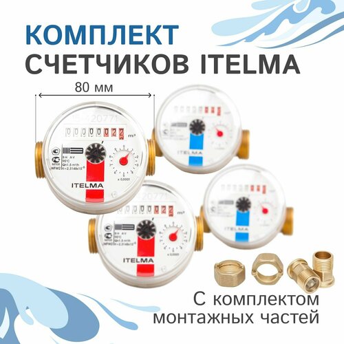 Купить Комплект счетчиков холодной и горячей воды Itelma WFK20. D080 и WFW20. D080+КМЧ с обратным клапаном, L-80 Ду-15 1/2″ — 2 шт. с доставкой по всей России.