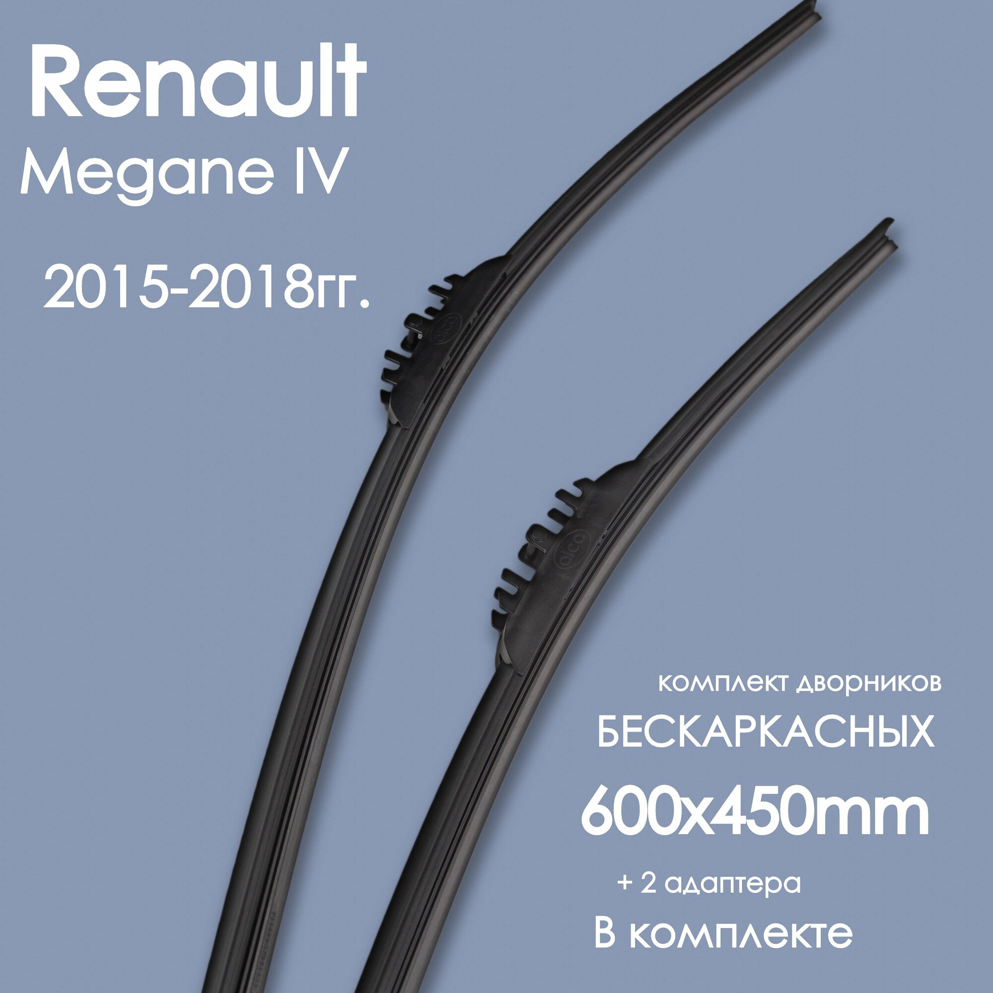 Комплект щеток стеклоочистителя бескаркастные для автомобиля Renault(Рено) Megane IV 2015,2016,2017,2018гг. , дворники автомобильные 600/450мм+ адаптера Bayonetarm (2 шт.): сравнение цен, характеристики, фото, актуальное наличие и цены.