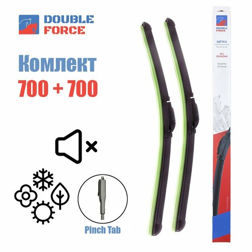 Бескаркасные щетки стеклоочистителя Double Force предназначены для использования в любой сезон, имеют аэродинамический профиль увеличивающий прижимную силу прилегания по всей поверхности стекла. Бескаркасная конструкция стеклоочистителей положительно себя зарекомендовала в зимний период, так как за счет своих конструктивных особенностей значительно меньше подвержена намерзанию корки льда. Резинка стеклоочистителя выполнена из высококачественного каучука и не теряет своих свойств даже в сложных температурных условиях (высокая степень очистки -40℃ до 80℃.). Графитное покрытие обеспечивает износостойкость, бесшумность, плавное скольжение, высокую степень очистки. Тип крепления: Pinch Tab – 15 mm. Так же в комплект входят крепления: U-Hook - 9X3 mm, 9X4 mm + bayonet, Bayonet - 9X4 mm, Side pin – 17 mm, 22 mm, 16 mm, Push button – 19 mm, Special Pinch tab – 6 mm