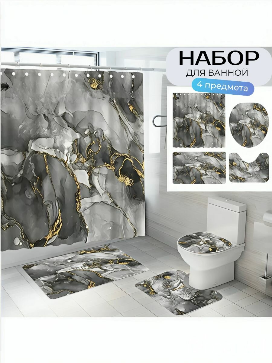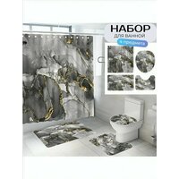 Комплект штор и ковриков для ванной «Мрамор», 4 в 1, влагоотталкивающий материал: сравнение цен, характеристики, фото, актуальное наличие и цены.