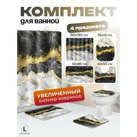 Купить Комплект штор и ковриков «Мрамор», 4 в 1, для ванной, фотошторы, ткань/полиэстер, 180×180см с доставкой по всей России.
