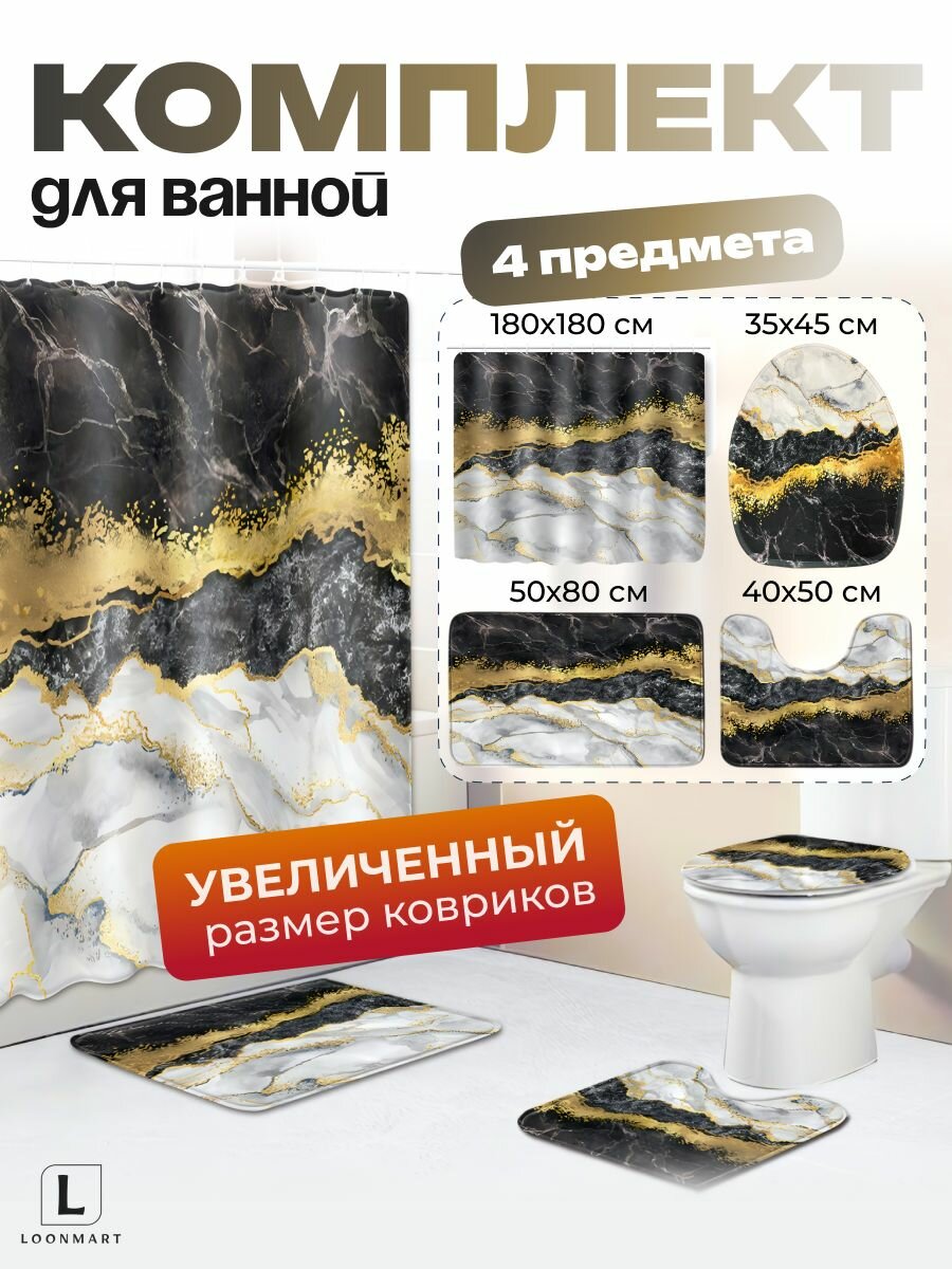 Комплект штор и ковриков «Мрамор», 4 в 1, для ванной, фотошторы, ткань/полиэстер, 180×180см: сравнение цен, характеристики, фото, актуальное наличие и цены.