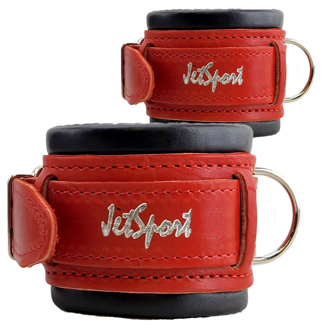 Купить Комплект силовых манжет на ногу JetSport F157к, натуральная кожа, 2 шт. красные с доставкой по всей России.