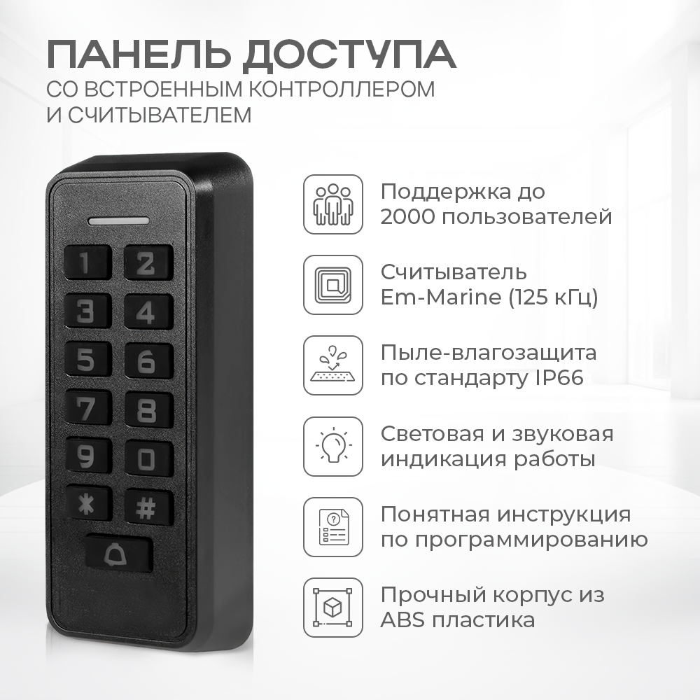 Защищенная от непогоды надежная электроника обеспечит долгую эксплуатацию системы доступа при различных условиях - корпус панели имеет компаундную влагозащиту и изготовлен из прочного пластика Наличие встроенного контроллера в корпусе панели исключит большое число соединений и уменьшит набор необходимых для организации СКУД устройств. Провода разного цвета и встроенное реле упростят подключение замка из комплекта. Дополнительный шлейф позволит подключить дополнительный считыватель RFID ключей, если вдруг возникнет такая необходимость. Возможность подключения wiegand совместимого считывателя может оказаться отличным дополнением, например, при необходимости управления замком на значительном удалении от замка. Наглядным примером является место консьержа в миниотеле.