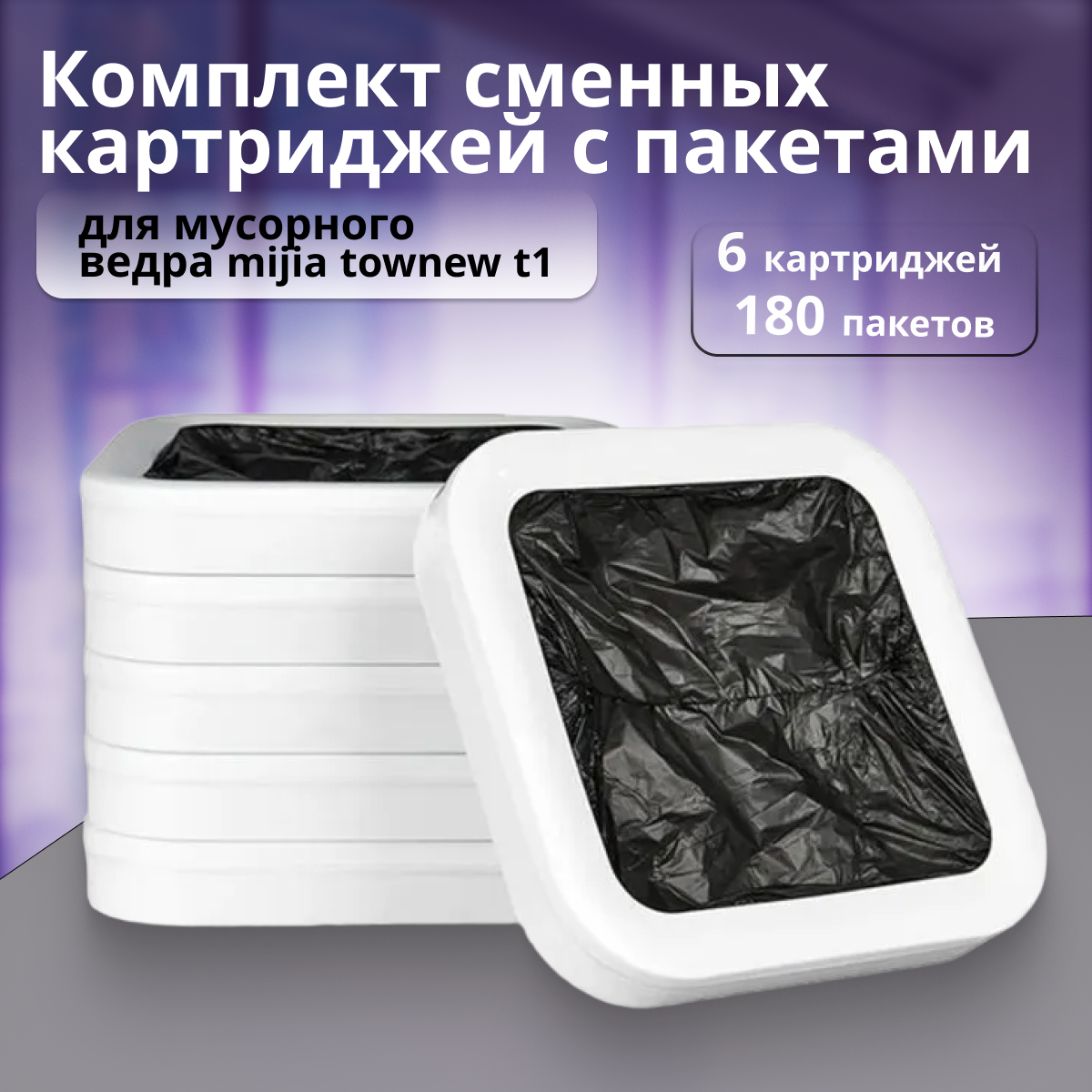 Купить Комплект сменных картриджей с пакетами для мусорного ведра Xiaomi Townew T1 (6 картриджей 180 пакетов) с доставкой по всей России.