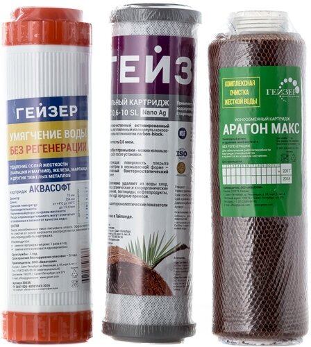 используется в с фильтре Гейзер Макс (для жесткой и сверхжесткой воды); комплектация: AquaSoft, Арагон Макс, Карбон-блок