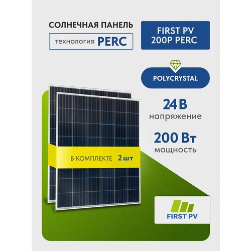 Купить Комплект солнечных панелей FIRST PV 200Р PERC, 200 Вт, солнечная батарея для дома, для дачи, 24В, 2 шт. с доставкой по всей России. Комплект солнечных панелей FIRST PV 200Р PERC, 200 Вт, солнечная батарея для дома, для дачи, 24В, 2 шт.: сравнение цен, характеристики, фото, актуальное наличие и цены.