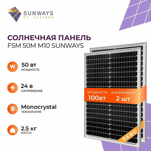 Комплект солнечных панелей FSM 50М M10 Sunways, 50 Вт, солнечная батарея для дома, для дачи, 12В, 2шт.: сравнение цен, характеристики, фото, актуальное наличие и цены.