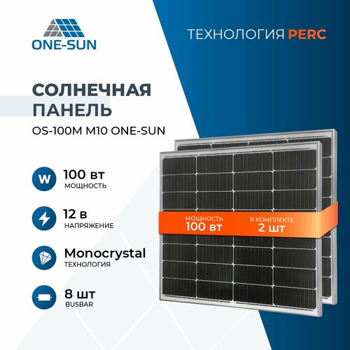Солнечная панель 100Вт One-Sun 100М - это модуль повышенными характеристиками производительности и высоким качеством исполнения. Модуль произведен из новейших высокоэффективных монокристаллических солнечных элементов PERC M10 первой категории качества Grade A, что обеспечивает наивысшую надежность и долгий срок службы. Модули One-sun отличаются превосходным соотношением цена/качество и обеспечивают энергией сотни объектов на территории России и стран СНГ.