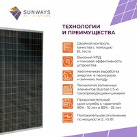 Комплект солнечных панелей Sunways FSM 200M M10, солнечная батарея для дома 200 Вт, для дачи, 12В (2 шт в комплекте): сравнение цен, характеристики, фото, актуальное наличие и цены.