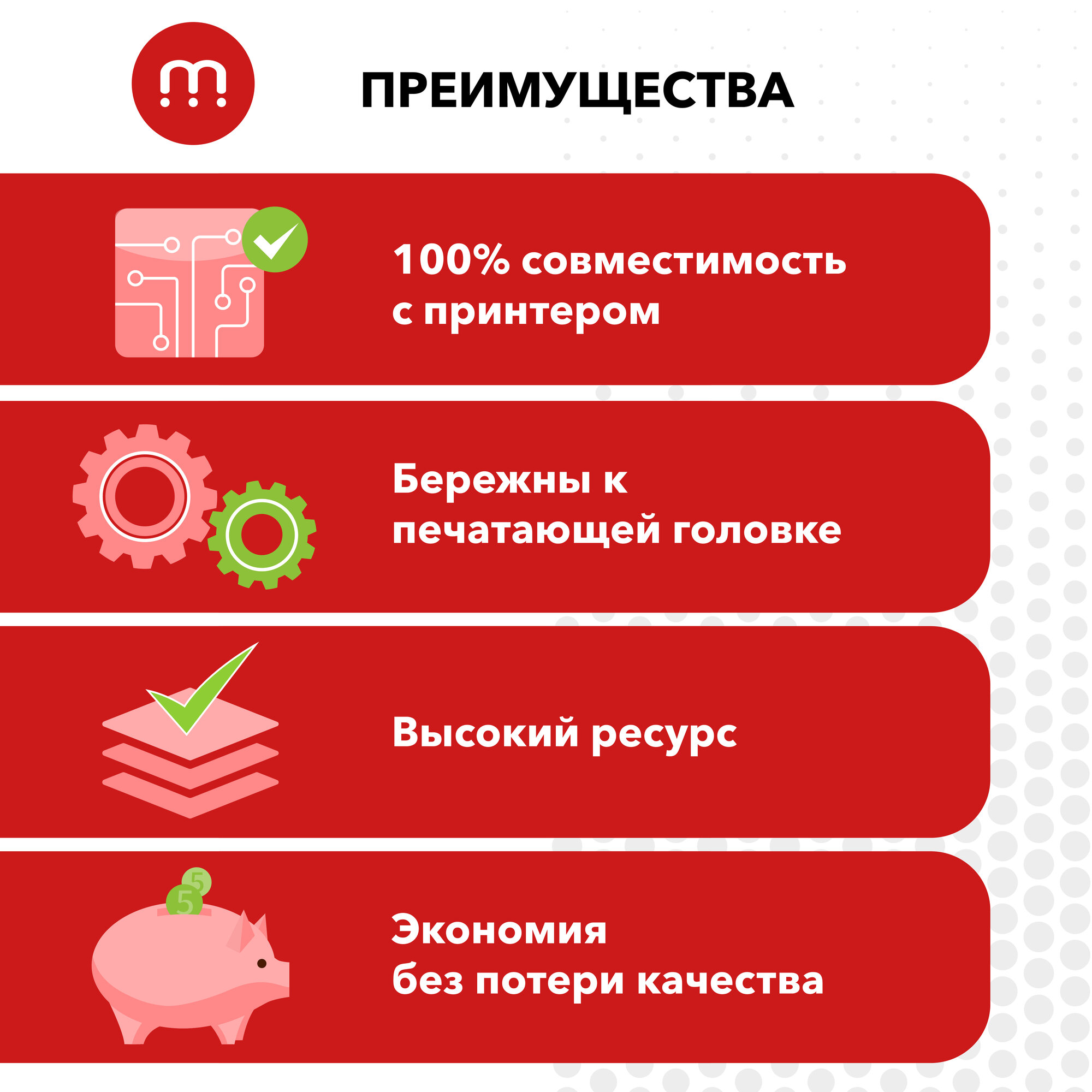 Картриджи легки в установке, 100% совместимы с принтером, заправлены безопасными чернилами, бережными к печатающей головке. Пигментные чернила последнего поколения, позволяют печатать на глянцевой и матовой бумаге. У пигментной краски повышенная устойчивость к выцветанию и влажности, а также точная цветопередача без потери качества. Катриджы экономичены, соответствует заявленному ресурсу печати от производителя (ресурс печати картриджа рассчитан при 5% заполнении страницы в формате А4).
