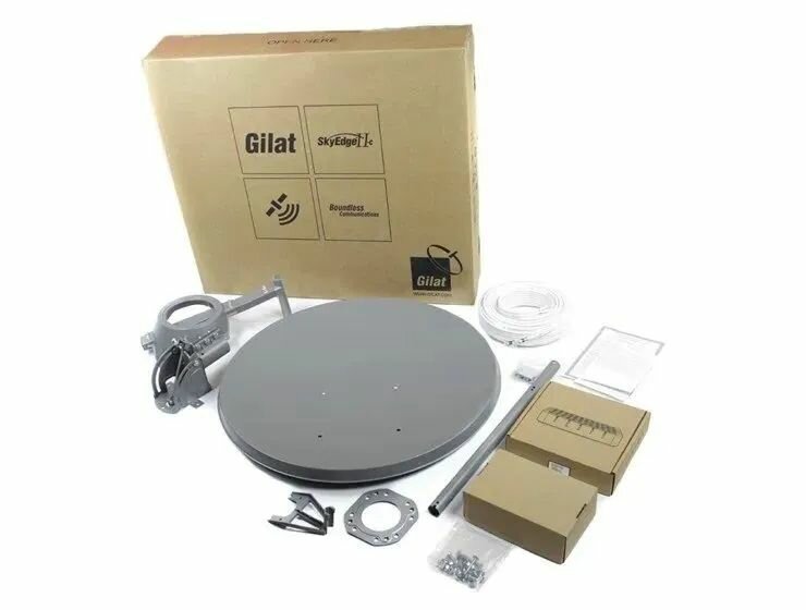 модем спутниковый Gilat Gemini / приёмопередатчик мощностью 2,5 Вт / антенна офсетная параболическая диаметром 0,74 м / коаксиальный кабель RG-6 (30 м) / F-разъёмы для кабеля RG-6 (2 шт.)
