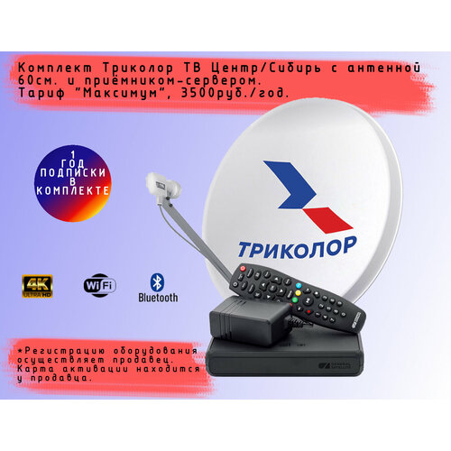 Комплект оборудования с новым двухтюнерным приемником-сервером с поддержкой ULTRA HD со встроенным wi-fi модулем, с подпиской на 365 дней просмотра пакета "Максимум" (3500 рублей в год).