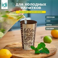 Комплект стаканов с крышкой Idiland IZI-GO 550 мл х 4 шт, с декором, темно-коричневый 241114824/01: сравнение цен, характеристики, фото, актуальное наличие и цены.