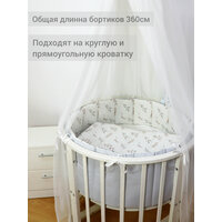 Бортики универсальные, подходят как на прямоугольную, так и на круглую кроватку. Размер бортиков: 2шт 120см/30см и 2шт 60см/30см. В наших изделиях мы используем только премиальный хлопок, бортики в кроватку из турецкого хлопка поплин люкс (100% хлопок без примесей), наполнитель холкон, он отлично держит форму и пропускает воздух. Бортики можно стирать в стиральной машинке, инструкция по уходу прилагается. Бортики надежно защищают вашего малыша от ударов о прутья кроватки, от застревания ручек и ножек между прутьями кроватки, от сквозняков, и при этом бортики занимают немного места в кроватке. Натуральные ткани, приятный рисунок и качественные материалы обеспечат малышу комфортный сон. После стирки не потеряют свой цвет и форму. Бортики для детской кроватки прошли сертификацию, что подтверждает их соответствие стандартам качества и безопасности. Наш комплект в кроватку будет замечательным подарком на рождение малыша. Выбирая нас, Вы выбираете качество и безопасность для вашего малыша, а также красивое и уютное гнездышко. Внимание! При пошиве мы используем специальные термо чернила, с помощью них мы размечаем стежку на изделиях и делаем необходимые пометки. Данные чернила удаляются с помощью утюга на этапе сборки продукции, но выяснилось, что в морозную погоду при доставке они могут проявиться. Просим Вас не относиться к данному факту как к браку, а просто пройтись утюгом и чернила мгновенно исчезнут.