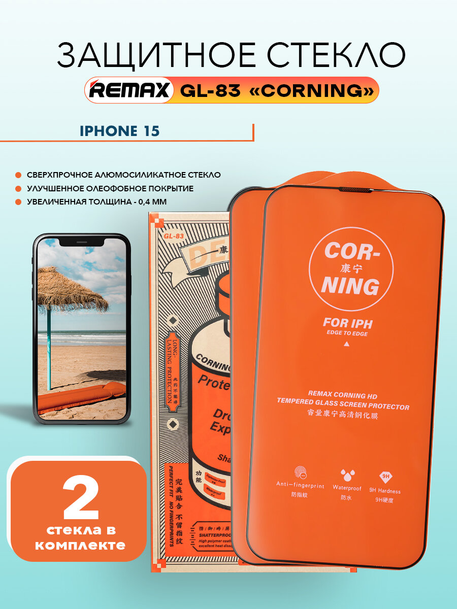 Комплект стекол для iPhone 15, REMAX CORNING GL-83, алюмосиликатное, усиленное, на Айфон 15, 2 шт: сравнение цен, характеристики, фото, актуальное наличие и цены.