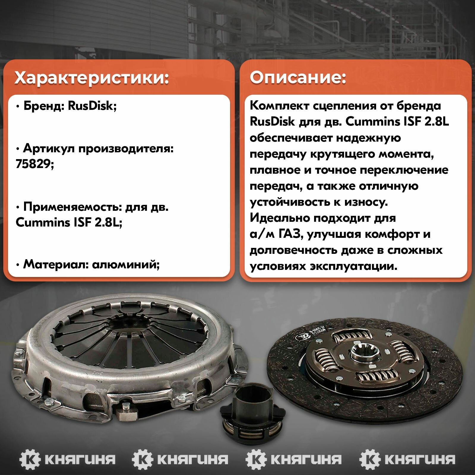 Комплект сцепления RusDisk, для автомобилей ГАЗ Бизнес с двигателем Cummins, 2,8 л: сравнение цен, характеристики, фото, актуальное наличие и цены.