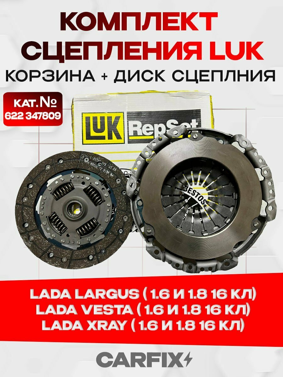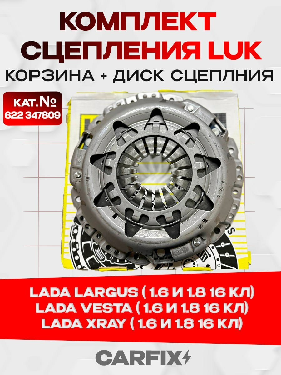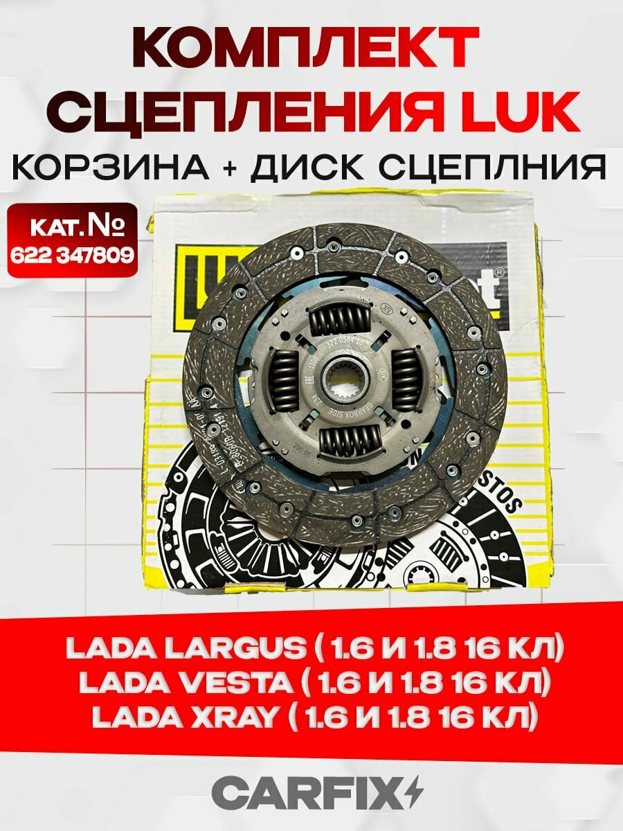 Сцепление VESTA, X-RAY, LARGUS (двиг. ВАЗ 1.6/1.8 + МКПП Renault JH3/JR5) LUK 622347809: сравнение цен, характеристики, фото, актуальное наличие и цены.
