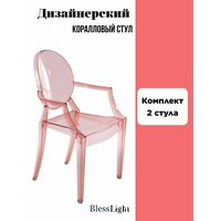 Комплект стульев 2 шт коралловый Louis Ghost Стул пластиковый со спинкой и подлокотниками для кухни, дома и дачи Blesslight: сравнение цен, характеристики, фото, актуальное наличие и цены.