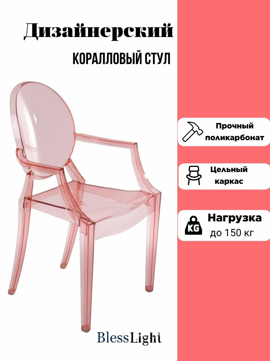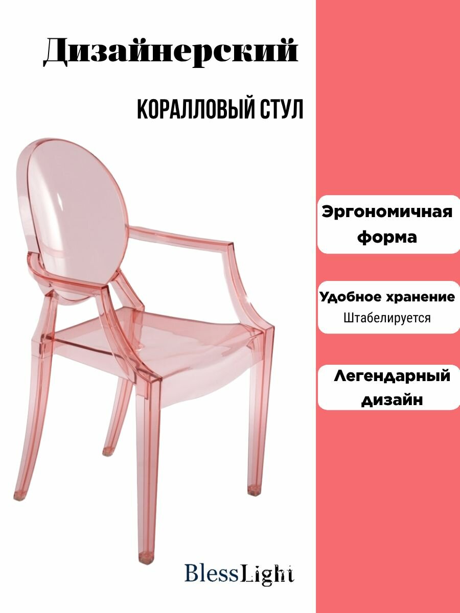 Комплект стульев 4шт коралловый Louis Ghost Стул пластиковый со спинкой и подлокотниками обеденный Blesslight: сравнение цен, характеристики, фото, актуальное наличие и цены.