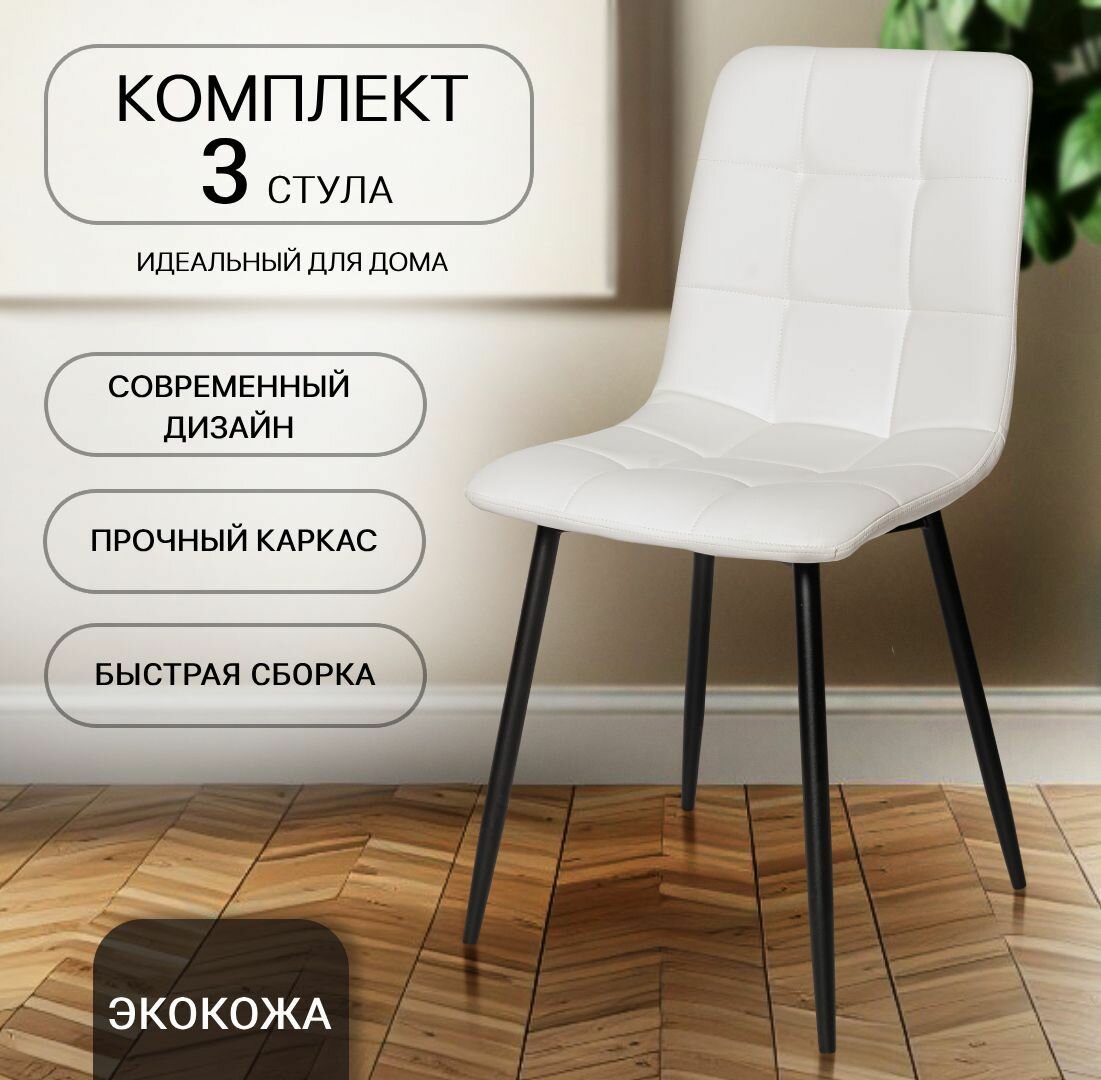 Комплект стульев для кухни, 3 шт. ОКС — 1225 белый, экокожа, со спинкой на металлокаркасе: сравнение цен, характеристики, фото, актуальное наличие и цены.
