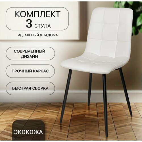Комплект стульев для кухни ОКС - 1225 белый от Laroom - это современное и практичное решение для вашей кухни. В комплект входят 3 стула, каждый из которых выполнен в белом цвете и обтянут качественной экокожей.