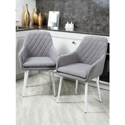 Купить Комплект стульев для кухни и гостиной Ар-Деко, серый/белые ноги, 2 шт с доставкой по всей России.