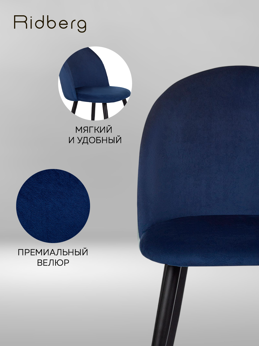 Купить Комплект стульев для кухни и гостиной Ridberg Лори Velour, синий, для дома, обеденный стул мягкий с боковой поддержкой спины, 2 шт с доставкой по всей России.